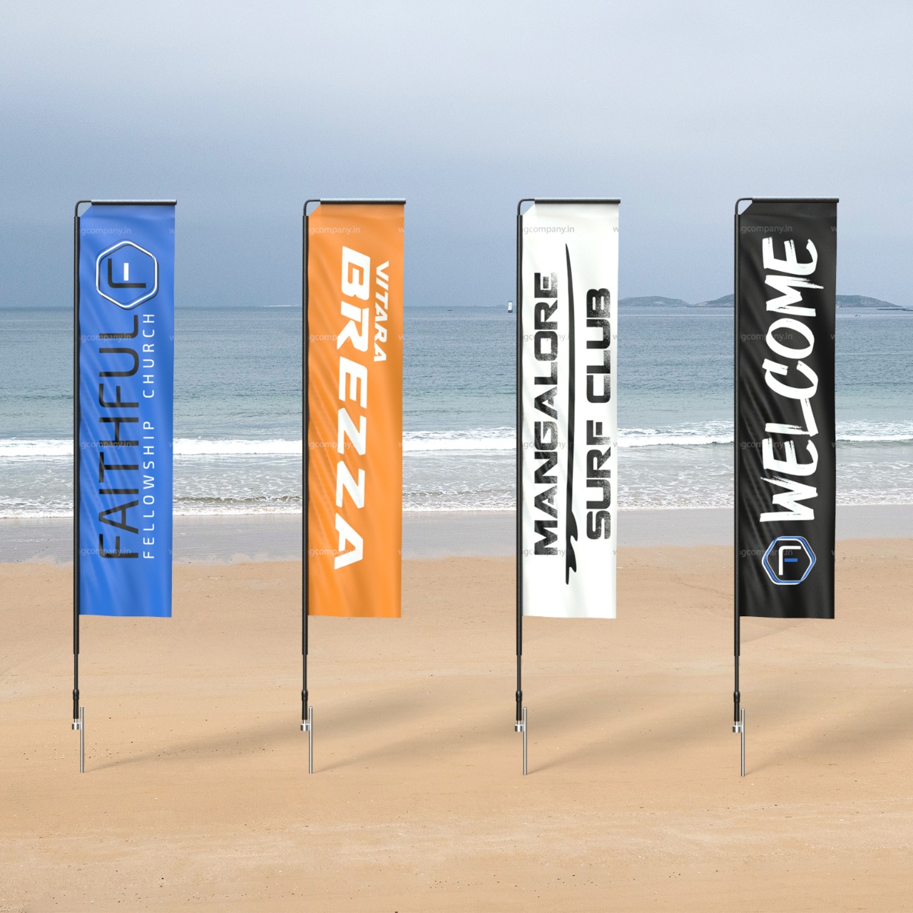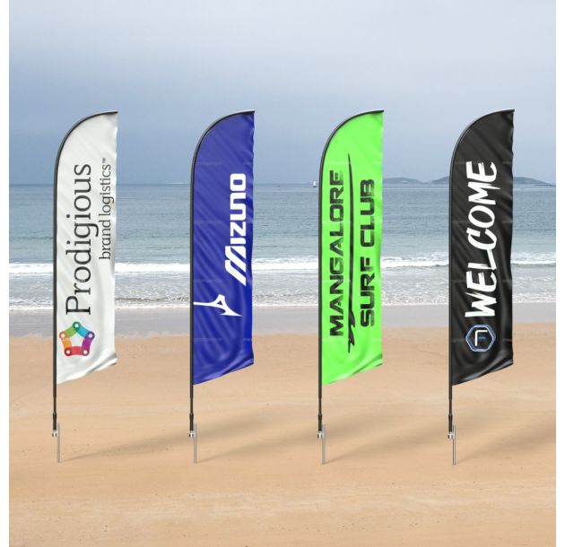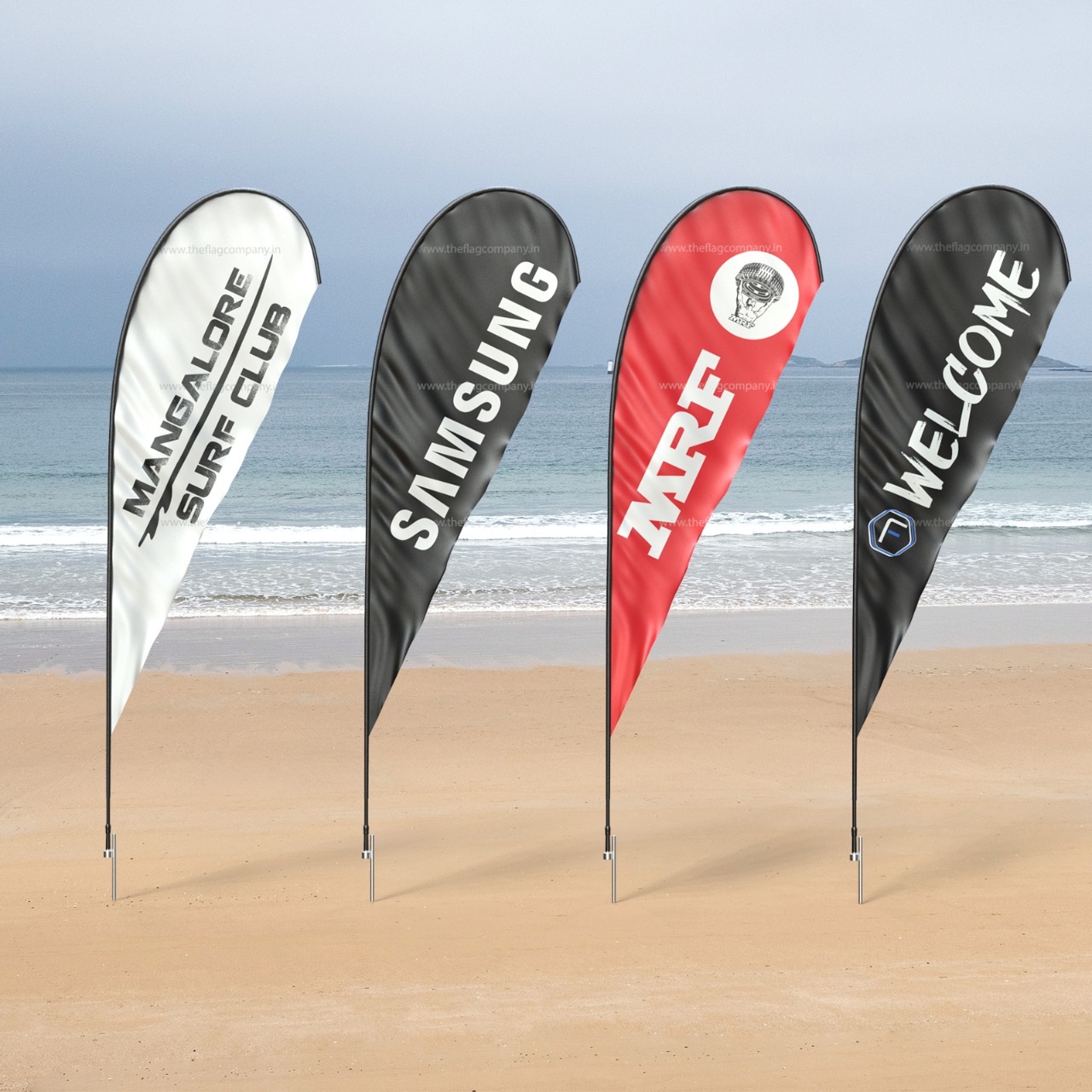Powerhouse of flag advertising, known for its unique aerodynamic shape that prevents wrapping around the pole. Its "teardrop" design keeps the fabric under constant tension, providing a smooth, high-visibility surface for your logo. As a leading flag printing Dubai specialist, we produce these flags to help businesses advertise in Dubai with maximum impact, whether at a beach resort, a car showroom, or during UAE festivals.